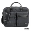 This carrier is for the executive on the go. Display your logo on the Solo Hamish briefcase! The 3" x 12.12" x 16" bag is constructed with a waxed canvas body. It includes a fully padded 15.6" laptop compartment, a tablet pocket, and three exterior zippered pockets. The bag comes with an organizer section, a key clip, and a removable and adjustable 53" shoulder strap. It's the perfect bag for students too! Customize this briefcase with your company, school, or organization's name, logo and/or organizational message. Don't pass up this convenient carrier!