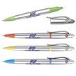 Make an indelible mark on your customers and supporters when you make a gift or giveaway of some quality writing gear by Souvenir®. The ABS plastic Augusta is 5 3/8 x 3/8 with twist-action operation and a two-piece capped highlighter point to accentuate notes, classroom texts and more. Silver tone barrel with highlighter color-matched accents and a handy curved pocket clip. Add your school, sports team, organizational or company logo or message to customize.