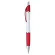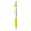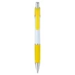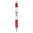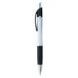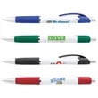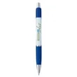 The Emblem Pen features an elegantly contoured barrel with a comfortable rubber grip and chrome-plated accents. The Souvenir® logo is molded into metal rivets on the upper barrel.
