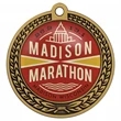 Stock 2.5" Die Cast Medal with 3-dimensional wreath border design. Includes full color poly dome imprint on 1 side. Choice of antique brass (gold tone), antique nickel or antique copper finish, perfect for recognizing levels of achievement. Optional 7/8" neck ribbon with quick release clip available. Perfect for quick turn race, marathon or event medals.