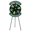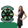 This prize wheel provides extra messaging space above and below the wheel to familiarize showgoers with your brand, logo or campaign. All graphic panels can be custom printed with your design. Includes twelve removable prize panels, one central disc panel, a top "banner" panel and a bottom "banner" panel.