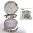Playful spirals of polished silver metal extend and retract to perfectly display the time.