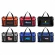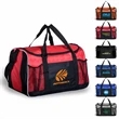 Sports duffel bag. Adjustable shoulder strap & amp; carry handles. Large zippered main compartment. Front sleeve pocket with hook and loop closure. Elastic mesh pocket for bottle or phone (Accessories Not Included). Multipurpose Duffel Bags, High Density Nylon Storage Bags, Storage Duffel. 9.5" Gusset.