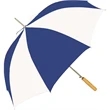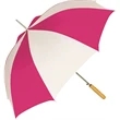 Don't leave your customers out in rain - protect them with this umbrella that's customized with your logo! This sporty two-tone stick umbrella has an push-button, automatic opening shaft, 48 inches of coverage and a straight finger-grip stained wooden handle. Choose from a variety of color choices to match your branding needs. This umbrella is a wonderful premium giveaway for a variety of different organizations and businesses.