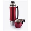 Great design for thermos, 21 oz. vacuum sealed stainless steel thermos with 2 removable drinking cup, cup is lid and lid also is cup, a handle is to be carried easily. This insulated beverage holder keeps your drinks hot or cold for when you are ready for your next cup of your favorite beverage. Due to stainless steel materials for liners and outside shell, your logo can be imprinted.