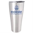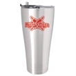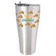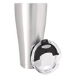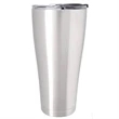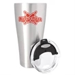 Quench your thirst for publicity and exposure with this tall and cool 18/8 stainless steel drinking tumbler. This 8 x 4 vessel holds a big 30 ounces and has a double-wall vacuum insulated construction that will maintain the temperature of hot or cold beverages for hours. Spill resistant polypropylene clear plastic sip-though lid. Silver tone. Add your school, sports team, organizational or company logo, emblem or message to create a thirst-busting branded gift or giveaway for marketing and social activities and events.