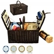 Sponsor a great time with your brand when you add it to this Surrey picnic basket for two! The traditional hand crafted full willow picnic basket includes coordinating melamine plates and napkins, glass wine glasses, stainless flatware, corkscrew and a cooler. Options include a fleece blanket and coffee service with a vacuum flask and stainless coffee mugs. The plate and napkin patterns available are London, Santa Cruz, Aegean, Hamptons and Bahamas. They'll love sharing your brand with friends or family over an outdoor meal in the park!