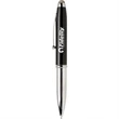 Point, write or shine your way to promotional success! The T. Macy Triple Function, 3-in-1 multi-tasker features a ballpoint pen that quickly changes to a stylus pull cap with advanced connectivity for all touchscreen devices and a bright and powerful push-to-activate LED flashlight. Offered in attractive colors, the high gloss chrome and enamel barrel comes with a silver engraving of a logo, name or custom design to get your promotional message across.