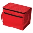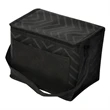 This lunch bag has a tonal zigzag pattern with a non-patterned front slash pocket. It has an inner foil insulated area, top zipper closure and two self-material handles. It is made from non woven 80 gram Polypropylene.