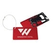 Easily resolve minor issues you might encounter during your day with this 10-in-1 multitool. Measuring 2.19" x 3.44" x 0.13", this kit includes a ruler, direction recognition tool, 14/12/10/8/7/6 wrench, flathead screwdriver, peeler, and letter, box, bottle, and can openers. The metal ring strap enables easy carrying, while the color sleeve prevents snagging. With your logo laser printed on the back, this multitool is a great everyday accessory for customers and clients.
