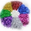These cheer leading pom poms are made of soft plastic with a white hard plastic handle. They are durable, reusable, lightweight, and convenient to be held by hands. Proper size for child or adults: the streamer length is 25 cm (10inches), the handle length is 10cm (4inches), each pom pom weights about 20g. Serve as cheer accessories, not only for sport cheerleading such as football, basketball, baseball, softball, but also use as party costume accessories in night party fancy dress. You can customize the weight, and your Logo or artwork can be imprinted on the handle.