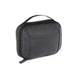 Travel organizer case for cables and other small tech accessories and zipper wraps around 3 of the 4 sides. Made of 600D two-tone Polyester with PVC coating and 210D Polyester lining. Front open pocket (5.5"w x 3"h). Poly web carry handle (6.25"l x 0.75"w). Features 3 interior pockets: 2 with zipper closure. Inside front cover zipper pocket: 6.5"w x 5.75"h, inside back cover has 2 pockets, one open pocket: 7.25"w x 4.25"h, and one is mesh with zipper: 7.25"w x 3.75"h. Cables not included. Hand-wash only. Recommended weight tolerance: 2 lbs.