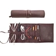 This leather Tech & Accessory roll is a convenient and secure way to gather all your every-day gear in one spot. Has multiple slots for cords, pens & markers, stylus, brushes, glasses, etc., plus a spacious multi-purpose zippered pouch for other essential items. Strong exterior leather tie holds everything in place. Size: 8"h x 18.75"l (open)