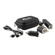 This is the perfect item for those of you on the go! Our handy tech kit includes rectangle zippered case. Zippered travel case. 2000mAh power bank. USB car charger adapter. Oval wall charger adapter. Earbuds.