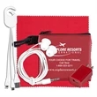 Tech Pouch comes with the following matching unimprinted items: #5088 6"x6" Microfiber Cleaning Cloth, #5140 Charging Cable, #5127 UL Listed USB Wall Charger and white headphone Earbuds. Item #5140 3-in-1 Charging Cable with 5 pin attachment for use with Apple ® iPhone (including 11 & 12) and other Apple® devices, Micro USB attachment for use with Android® phone and other new devices. Apple iPhone® and Apple ® are a registered trademarks of the Apple ® corporation.