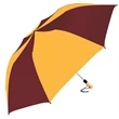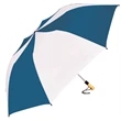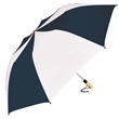 With 58 inches of coverage, the Big Storm™ is a sporty, two-toned oversized umbrella that will easily cover 2 people. Features include a wind-resistant shaft that springs back from heavy winds without breaking, a comfortable oak wood handle, strong fiberglass ribs and spreaders and an automatic push button opening. It's available in a variety of fun color options for you to choose from and folds down to 22 inches and stays closed with a strap closure. Customize it with a logo or brand name to create a great promotional giveaway for any business, as well as golf tournaments, tradeshows, corporate events and more! An optional strap imprint is also available.