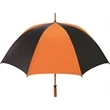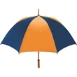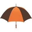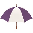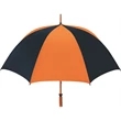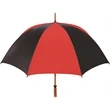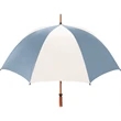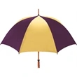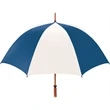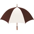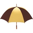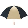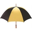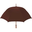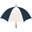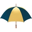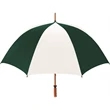 Don't let a little rain stop your promotion - stay outdoors and boost your brand at the same time with this sporty golf umbrella! The Eagle umbrella features a quality, strong manual wood shaft, a comfortable oak wood handle, fiberglass ribs and spreaders plus a pewter tip for added strength and a great look. With its windproof design and fiberglass construction, this umbrella will spring back from heavy winds without breaking. It's available in a wide variety of color choices and has an oversized 62" coverage area to help clients "weather" any storm! Customize it and hand it out at the next promotional event or tournament!