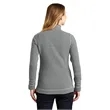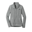 The North Face Women's Sweater Fleece Jacket. A soft, heathered tone adds casual appeal to the heavyweight, sweater-knit fleece jacket that's warm, yet breathable, on the trails. 300 g/m2 100% polyester sweater knit with brushed fleece interior Constructed from 53% recycled polyester sweater knit Sweater-knit fleece with a brushed interior for comfort Reverse-coil center front zipper Open hand pockets Contrast embroidered The North Face logo on left chest Stylish stitching details on lower sleeves **
