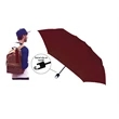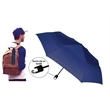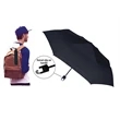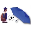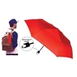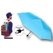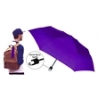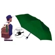 Super mini folding umbrella with easy swivel clip-on handle. Folds to a convenient 11" but has a full 42" coverage. Strong manual telescoping shaft is powder coated for rust resistance and long term use. Comes with matching deluxe nylon cases. Clips on most bags and backpacks! Just Clip It!