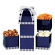 Treat your customers to a Three-tier experience using this Three-tier Cookie Tower! It comes with buttery shortbread, almond tea and rich chocolate chip cookies. It comes in three-tiered boxes with a printed ribbon that you can customized with your own company name or logo! It comes in fun four-language stock design ! You can also opt to customize the box with your own design!