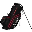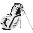 Titleist Hybrid 14 Golf Bag. High-grade aluminum legs and advanced hinged bottom for best-in-class stability. Self-balancing, convertible strap system. Integrated cart strap tunnel for easy access. Double apparel pockets for maximum storage. Dual-density foam strap for durability, cushioning and lasting comfort. Low profile top cuff with Tour-inspired integrated handles.