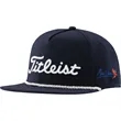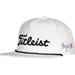 Titleist Tour Rope Hat. Logoed hats must be ordered in increments of 12 per color. A refreshed take on a classic design, this tour rope hat features a trendy flat bill, braided rope and an adjustable, snapback closure for a style that's all its own. It features lightweight antimicrobial material and moisture-wicking sweatband. Keep your cool as your game and the temperature heats up when you wear the Titleist Tour Rope Hat.