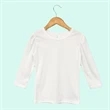 This white long sleeve toddler tee shirt can help your target audience see your brand frequently! Made of 5.6 oz. 65% polyester and 35% cotton interlock knit, the tee features long sleeves and scallop trim. It can be customized with your name, logo or slogan using any of the offered imprint methods. It's offered in four toddler sizes. Make a huge impact for your daycare, team, hospital or other child-friendly business when you hand it out to new and potential customers!