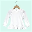 Your next campaign can make waves with this white long sleeve toddler tee shirt! Made of 5.6 oz. 65% polyester and 35% cotton interlock knit, the tee features long sleeves, scallop trim and ruffle hem. It can be customized with your name, logo or slogan using any of the offered imprint methods. It's offered in four toddler sizes. Make a huge impact for your daycare, team, hospital or other child-friendly business when you hand it out to new and potential customers!