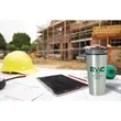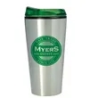 Take the edge off of your work or school commute each day with a few sips from this durable drinking tumbler. This 7 1/8" x 3 1/2" 16-ounce capacity vessel is made of stainless steel with a plastic liner and translucent AS plastic screw-on sliding lid. The double wall insulated construction will maintain the temperature of both hot and cold beverages. Choose from five color options and add your school, sports team, organizational or company logo or message to customize.