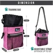 This dog training tote bag has a large inner compartment to store pet treats, toys, and more! You can also securely store your personal belongings, such as phone, keys, or wallet in the outside zipper pouch or mesh pocket. Made with durable high-grade polyester for a long-lasting experience. Built-in waste bag dispenser allows you to stay prepared at all times during any outings with your pet. Take your dog for a walk with confidence and peace of mind! This dog treat bag can be carried in 3 different ways. Use the removable 52 straps to wear around the waist, across your body like a shoulder bag, or simply attach the metal clip to your belt.