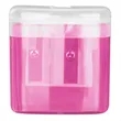 Translucent pencil sharpener is compact and features a flip cover and a shavings box. Equipped with a stainless steel blade fits 8 mm to 12 mm pencils. It features two holes, made of ABS. Stable case prevents pencil shaving spills, and easy to open and clear. It makes a great desk accessory for school or office. Perfect for pairing with your company name and logo. Enhance your marketing campaign with this practical product!