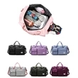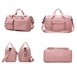The gym bag is made of durable nylon fabric, water-resistant surface and linings with good breathability. With our folding duffle bag, just throw all your gym necessity's into the main pocket, very roomy for makeup bag, shower kit, travel stuff. Our gym bag with shoe compartment features and fully waterproof wet pocket. Use as the gym duffle bag in trolley handle, nice choice for travel, airport, overnight trip as well as fitness, yoga, outdoor sports and more occasion.