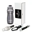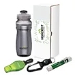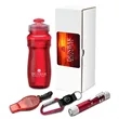 Prioritize safety and brand promotion with this cool and convenient set! This 3" x 10.25" x 3" 4-piece triumph safety set is a go-to kit filled with everything needed in an emergency. The set includes a 26 oz. Tritan water bottle with a stainless steel band and screw-top lid that's equipped with an integrated carrying handle. It also includes a safety reflector whistle with a swivel clip and an aluminum carabiner with a compass. An LED aluminum flashlight with a pocket clip completes the set. Add your company name, logo, or emblem to the products and the custom packaging for more eyes on your brand!