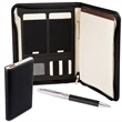 Gift set includes our new elegant LG-9371 Tuscany™ Mobile Portfolio,LG-9347 Tuscany™ Slim Executive Charger & matching LG-9304 Tuscany™ Executive Pen;Padfolio with cover made of soft faux leather Italian PU with front open pocket and LEEMAN logo subtly debossed on the back cover and features 2 elastic tech pockets (6.11"w x 3.5"h), ID slot (3"w x 2"h) and cable organizer (3.5"w x 2.33"h ) on the inside cover; Includes writing pad with approx 30 sheets of 80g cream lined paper; Interior pen slot; Rechargeable Lithium Polymer battery; Capacity: 4000mAh; Input DC 5V/1000mA; Output DC 5V/2100 mA ; CE, RoHS and FCC approved UL Certified; A power bank typically retains 80-90% of its original capacity resulting in an expected lifespan of 400-500 charges and discharges; California Prop 65 WARNI...