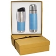 Customers will pour in when you advertise on the Tuscany™ Thermos and Tumbler Set! The thermal bottle holds 16.9 oz. and features a soft faux leather sleeve and stainless steel, leak-proof cap that keeps drinks hot or cold for hours. The insulated stainless steel tumbler holds 16 oz. and has a black plastic liner with soft faux leather sleeve and splash-resistant SAN acrylic drink-through lid. The sleeves remove for washing purposes. This set is available mid-September. The ideal gift for your top clients will have everyone wanting to know what they have to do to get their own! Gift Box: 10.625"w x 11.5"h x 3.5"d.