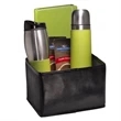 Celebrate clients with this fantastic gift set. They'll get a 16.9 oz. stainless steel thermos with soft faux leather sleeve and leak-proof cap that keeps drinks hot or cold for hours. A 16 oz. tumbler is also included and made with the same materials, but also features a black plastic liner and a splash-resistant SAN acrylic drink-through lid. There's even a journal with a faux leather cover and 80 ruled pages, an elastic loop closure, bookmark, and inside document pocket. All of these items are by Tuscany®, but they sit inside of a Venezia™ folding bin that's covered in 80 GSM non-woven polypropylene from the walls to the removable cardboard bottom. Lastly, they get two 6 oz. packets of delicious Ghirardelli hot cocoa. Make this your next great promotion!