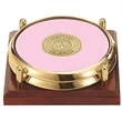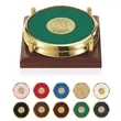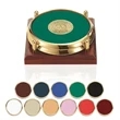 Protect all of your delicate serving surfaces at home or in your professional bar or restaurant with these handsome coaster kits. This pair of round leather and cork drink coasters are available in 11 great shades and include a 4 x 1 1/4 cherry wood pegged storage tray. Add your school, sports team, organizational or company logo or message to a center medallion on each coaster to create a bold branded giveaway for marketing and social activities and events.