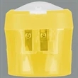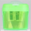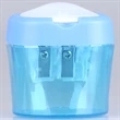 Pencil sharpener is compact and features a flip-top lid and a shavings box. Equipped with a stainless steel blade fits 8 mm to 12 mm pencils. It features two holes, made of ABS. Stable case prevents pencil shaving spills, and easy to open and clear. It makes a great desk accessory for school or office. Perfect for pairing with your company name and logo. Enhance your marketing campaign with this practical product!