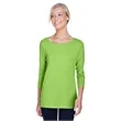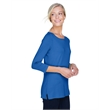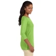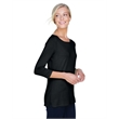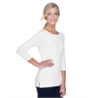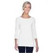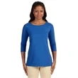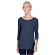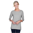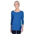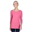 5 oz., 58% cotton, 39% modal, 3% spandex jersey; Soft modal blend drapes without clinging;Always flattering Perfect Fit™; Ballet neckline; New bracelet length sleeve ends right where you want it; Delicate shaping at waist; Longer 26" length (size medium);