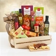 Take your picnic to the next level with this extra special gift. A rustic wooden crate holds a delicious sampling of gourmet treats including California nuts, tasty dried fruit, a bottle of balsamic vinegar and extra virgin olive oil, an assortment of California cheese spreads, mustard, dried fruits and nuts, and three flavors of sausage & salami. Fabulous!