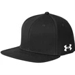 Under Armour Flat Bill Cap - Solid 97% Polyester, 3% Spandex. 6-panel. Built-in HeatGear sweatband wicks away sweat to keep you cool & dry. Stretch construction provides a comfortable fit. Flat brim, structured fit maintains shape with a slightly higher crown, for a modern look. Fitted Sizes: S/M(21-21.5"), M/L(21.75"-22.25"), L/XL (22.5"-23"), XL/2XL(23.25-24").