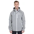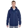 Under Armour Men's UA Coldgear Infrared Dobson Softshell Jacket. Loose: fuller cut for complete comfort. Left chest media pocket. Ribbed cuffs and waist to shut out the cold. Steel UA logo on Asphalt Heather. Overcast Gray UA logo on Midnight Navy. White UA logo on True Gray Heather.