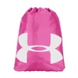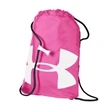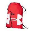 420-denier 50% polyester, 50% nylon;durable material withstands daily wear and tear; sternum clip so it stays on your shoulders; easy-cinch drawcord; cubic volume: 1,000; 14"W x 18"H x 2"D;