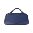 100% polyester; UA Storm technology delivers an element-battling, highly water-resistant finish; Tough, abrasion-resistant bottom and side panels;Two large, front zippered pockets; Removable, padded, HeatGear® shoulder strap for total comfort; Padded top grab handle; Large vented pocket for laundry, shoes and internal slip pockets; Embroidered UA label on side; Heat-seal UA logo on front; 29.5" x 14.5" x 14.1";