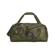 100% polyester; UA Storm technology delivers an element-battling, highly water-resistant finish; Tough, abrasion-resistant bottom and side panels;Two large, front zippered pockets; Removable, padded, HeatGear® shoulder strap for total comfort; Padded top grab handle; Large vented pocket for laundry, shoes and internal slip pockets; Embroidered UA label on side; Heat-seal UA logo on front; 24.6" x 12.1" x 11.4";