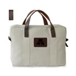 Urban Attache. Constructed of a tough 18 oz. Natural canvas. 14.5" x 11.5" x 2.5" Dia. The handles are constructed of 7 oz. top latigo tanned leather is a premium grade. All zippers have leather zipper pull tabs. Made in the USA.