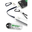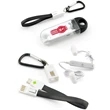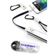 When you give someone a multi-function imprinted tech item, they're sure to appreciate it, use it often and be reminded often of who gave it to them, which is pretty much the definition of a great promotional gift! That's certainly the case with this product: white Bluetooth version 4.2 earbuds with volume control in a clear case (which will be imprinted) and a dual head charging cable, to charge the earbuds or iPhone and Android phones. It even includes a convenient carabiner clip attached to the connector storage hub and is individually boxed with instructions. Note: the power bank shown in some photos is sold separately.