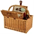 Add this vineyard picnic basket for two to your next promotion to put your brand on the move with recipients! The hand crafted and fully lined willow picnic basket for two comes with a unique built-in two bottle carrier. It includes a premium picnic set for two with ceramic plates, matching cotton napkins, glass wine glasses, stainless steel flatware and corkscrew. It features a top carry handle and faux leather accents for an attractive appearance. Clients are sure to enjoy sharing snacks and meals over your brand! Lifetime warranty.