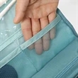 Made of quality polyester. Large capacity with open pocket for great organization, handle for easy carrying. Perfect for overnight staying, a long journey, gym shower and outdoor activities. 9.4"L x 3.7"W x 7.5"H. Your custom logo and PMS colors can be imprinted.