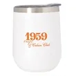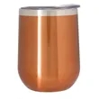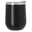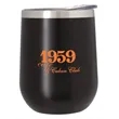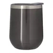 Any time is fine for wine -- so kick back with this handsome stemless drinking tumbler. This 4 3/8" x 3 3/8" vessel is crafted from double-wall insulated stainless steel to maintain the temperature of 12 ounces of your favorite hot or cold beverages for hours. Snap-on spill resistant lid makes for stress free sipping. Choose from four cool colors and add your school, sports team, organizational or company logo or message to create a refreshing branded giveaway for marketing and social activities and events.